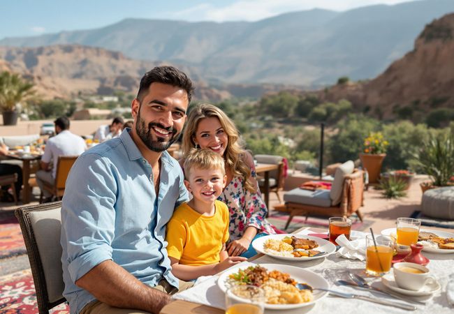 Discover the stunning Dades Gorge and serene Toudgha Essoufla Park with family, enjoying Moroccan cuisine and breathtaking landscapes.