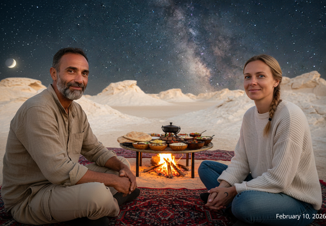 Explore Ein Khadra's oasis, conquer Khaled Mady Dunes, and revel in the White Desert's starlit bar scene with friends. Unforgettable!