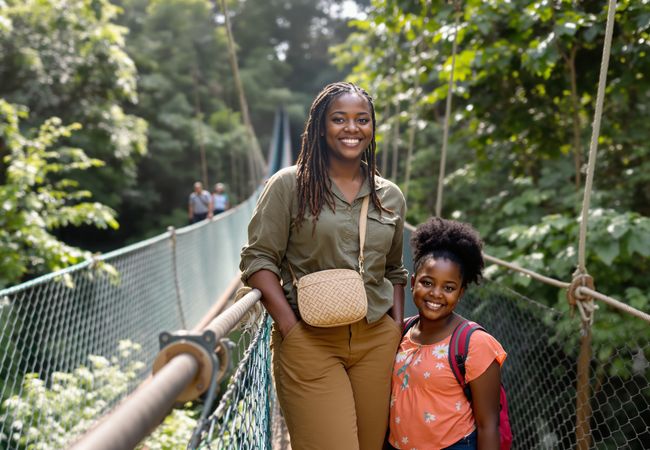 Discover the magic of Kakum National Park with Aya and her family. Explore the canopy walkway and immerse in Ghana's rich nature.