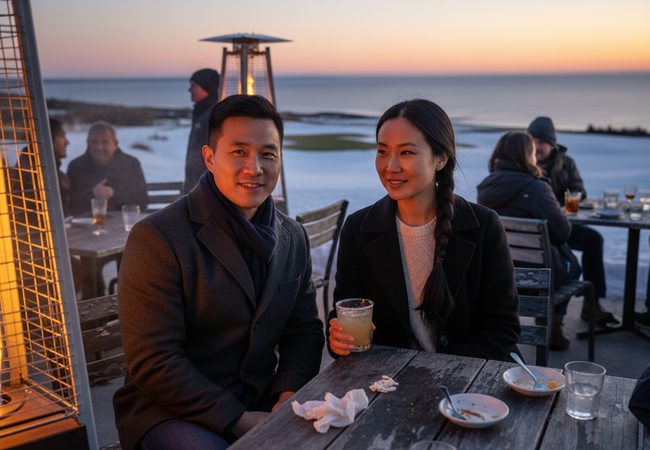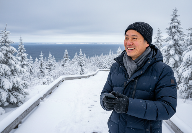 Discover the serene beauty of Cape Breton's Skyline Trail in winter, a journey of breathtaking views and culinary delights with friends.