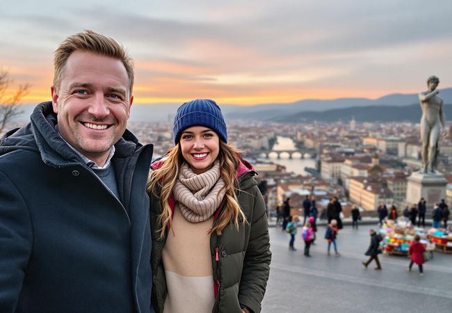Discover Florence's artistic heart with visits to the Accademia, Santa Maria Novella, and Piazzale Michelangelo. A day of beauty and history!