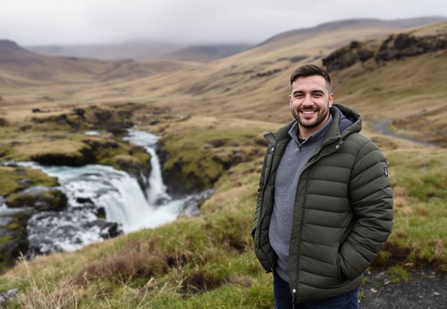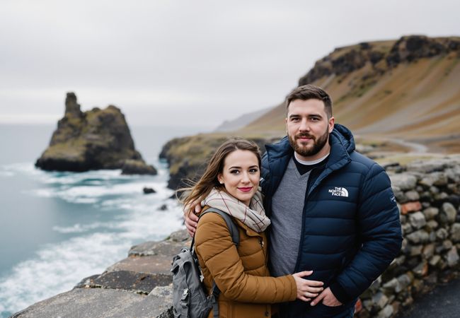 Embark on a scenic journey through Snæfellsjökull National Park, discovering hidden waterfalls and dramatic coastal landscapes with Georgios and Lena.