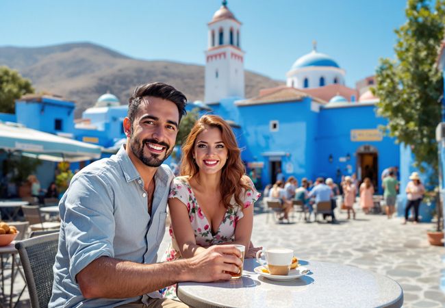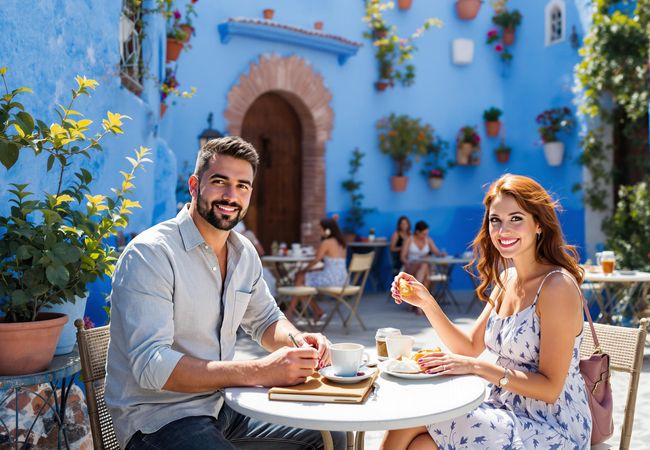 Join José and Isabella as they wander through Chefchaouen's blue streets, exploring vibrant markets and savoring Moroccan flavors.
