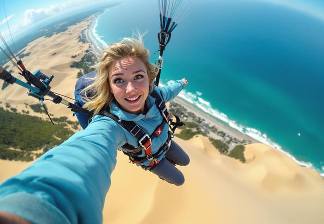 Experience the thrill of paragliding over the Tottori Sand Dunes and indulge in local cuisine on a solo adventure in Japan.
