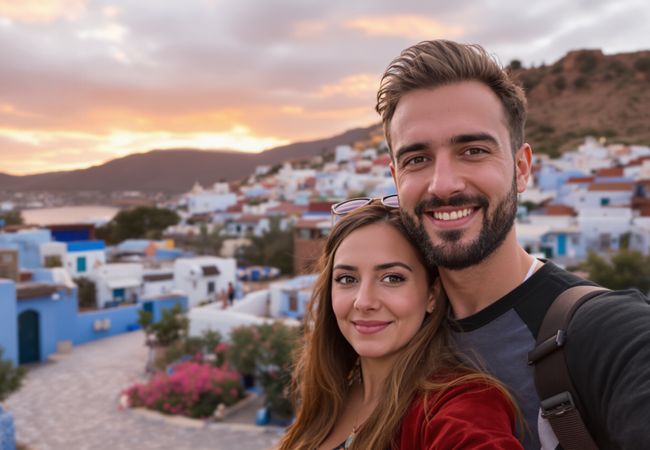 Wandering through Chefchaouen's blue-washed streets, savoring Moroccan flavors, and finding magic in every corner with my travel partner.