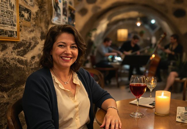 Explore Santorini's volcanic heart, swim in hot springs, and unwind with jazz in Fira for a day of adventure and relaxation.