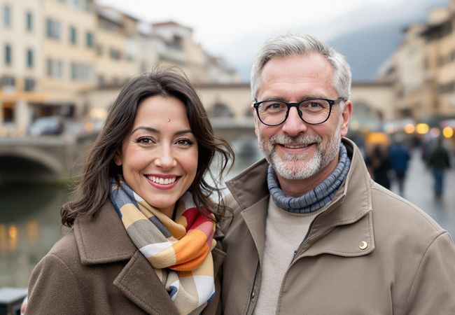 Discover Florence's artistic heart with Mei and David as they explore the Uffizi, Ponte Vecchio, and Palazzo Vecchio, savoring Tuscan flavors.