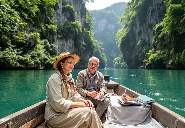 Experience the magic of Kumano Kodo with a serene boat tour through Doro Kyo Gorge and local flavors at KUMANOYASAI CAFE.