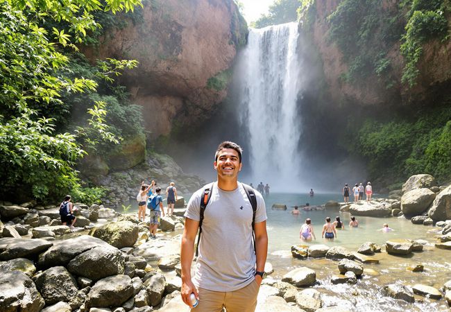 Discover the stunning Akchour waterfalls near Chefchaouen, hike through lush landscapes, and find unique souvenirs in local shops with friends.