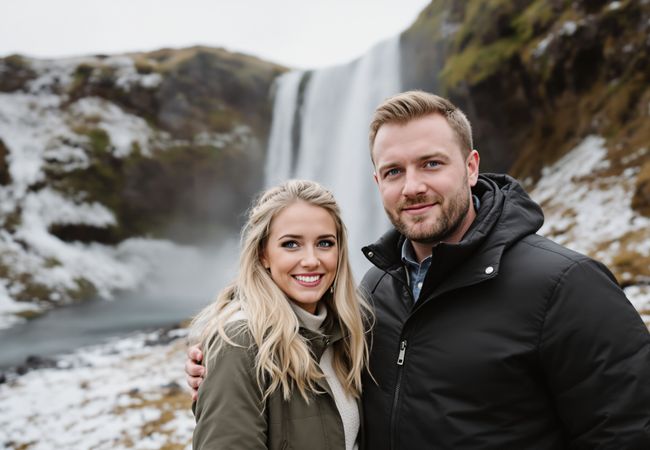 Ursula and Liam explore Bæjarfoss waterfall and the unique charm of Lýsuhóll, enjoying local flavors and stunning Icelandic scenery.