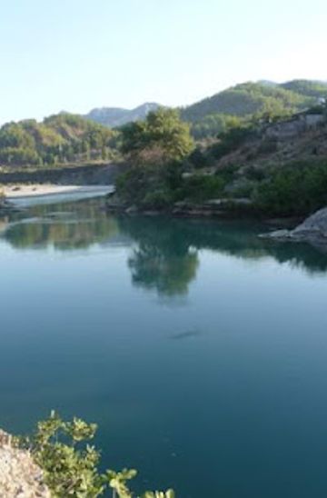 From Përmet, take one of the two daily blue buses that go to Benjë. The bus departs from the central bus station near 'Euro Supermarket' and passes by 'Hotel Ana'. The journey takes about 30 minutes and costs 100 Lek. From the bus stop in Benjë, follow the walking directions to reach the bridge.