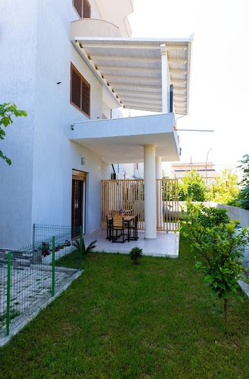 From Vlorë bus station, take a local bus towards Saranda or along the coastal road. Ask the driver to stop at Rruga Vlorë-Sarandë. Get off after 10-15 minutes and walk towards Rruga Mateo Matathia, approximately a 10-minute walk. Head east, then turn right onto Rruga Mateo Matathia; the villa will be on your left. A bus fare is approximately 30 ALL.