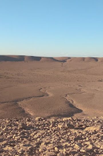 Take a bus or shared taxi from Hassi Delaa to the nearest village near Cratère de Madna. Inform the driver of your destination. From the village, hire a local guide or rent a 4x4 vehicle to reach the crater, as public transport does not go directly to the site. Shared taxi costs range from 200 to 500 DZD. Hiring a local guide may cost around 1000 DZD for a half-day tour.