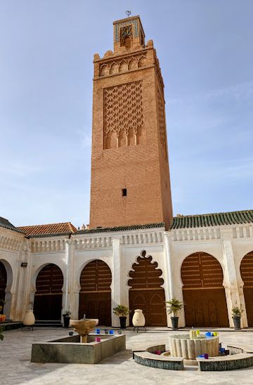 From Place de la Republique in central Tlemcen, walk west on Avenue de l'Indépendance for approximately 1 kilometer. Turn left onto Rue de la Liberté and continue for about 500 meters. The Great Mosque will be visible ahead at VMMQ+FRJ.