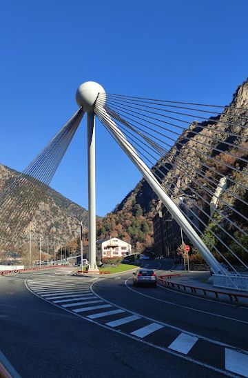 The Pont de Madrid is a striking modern bridge in Andorra la Vella, known for its unique spherical structure and cable-stayed design. It offers stunning views and serves as a vital connection point, enhancing access to the capital and showcasing Andorra's blend of nature and urban life.