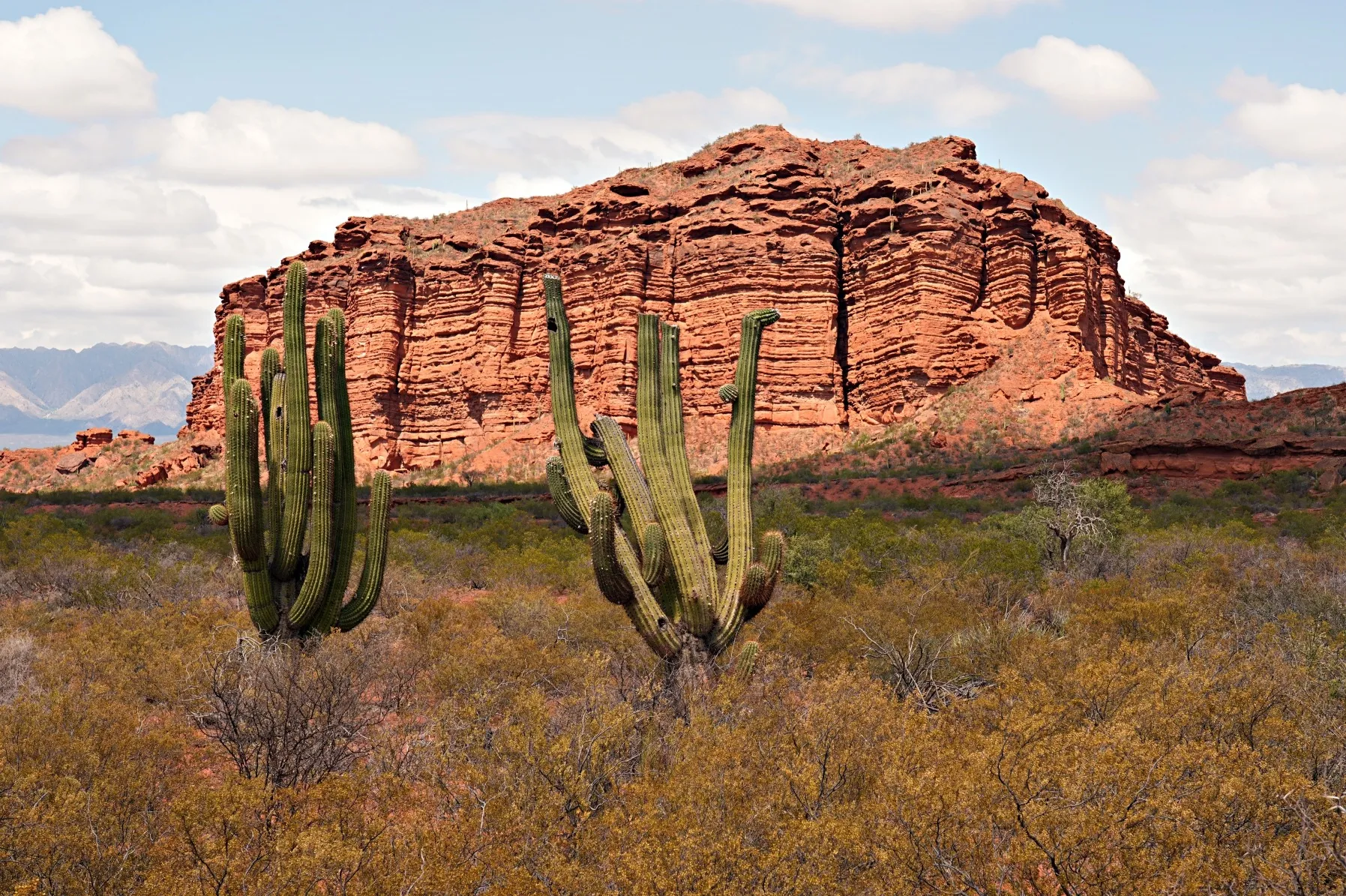 Los Colorados is a mesmerizing natural site in the Quebrada de las Conchas, located 16 kilometers northwest of Cafayate on Ruta Nacional 68 in Salta Province, Argentina. Known for its dramatic red rock formations sculpted by erosion over millions of years, this area showcases the region's unique geology with layers of iron-rich sediment creating vivid crimson hues that shift with the sunlight.Geological Wonders