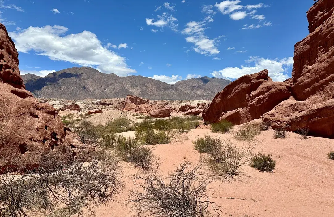 Vibrant red rock canyons 16km from Cafayate in Quebrada de las Conchas—hike dramatic formations, capture shifting hues, and embrace Salta's raw Andean geology.