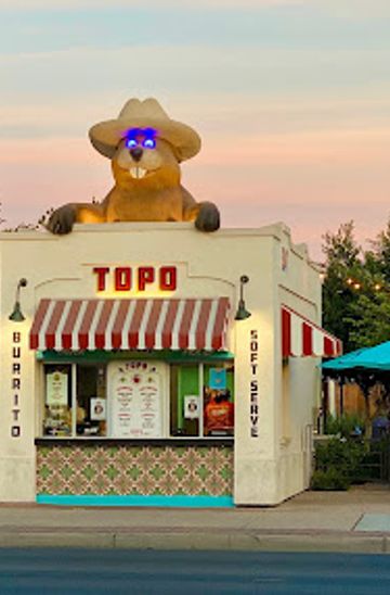 Topo Arizona is a unique, gopher-themed burrito stand in Gilbert's Heritage District, serving up delicious Mexican-American street food with a side of nostalgia. Known for its tasty burritos, elote, and prickly pear soft serve, Topo offers a fun and casual dining experience that captures the spirit of classic roadside attractions.