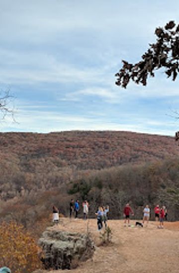 Yellow Rock Overlook, within Devil's Den State Park, offers stunning panoramic views of Lee Creek Valley from atop a bluff 300 feet high. The moderate 2.7-mile Yellow Rock Trail, constructed by the Civilian Conservation Corps (CCC) in the 1930s, leads to this iconic vista, showcasing unique rock formations and the beauty of the Ozark Mountains.