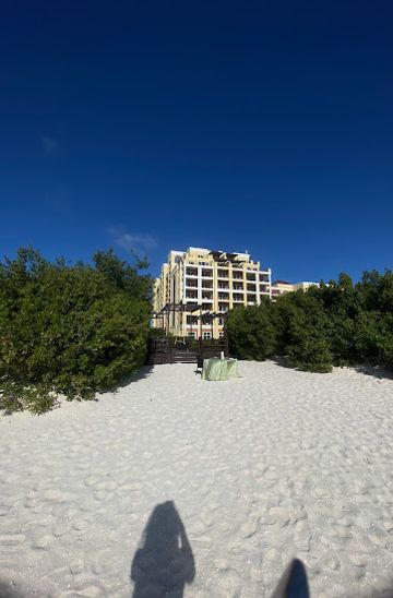 From the Palm Beach area, walk north along the beach promenade towards L.G. Smith Blvd. Continue for about 15-20 minutes, passing shops and restaurants. The Beach Swing is located at L.G. Smith Blvd 101. There is no cost for accessing the beach or the swing.