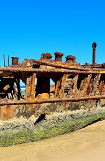 Discover the haunting beauty of the S.S. Maheno shipwreck on Fraser Island, a captivating blend of history and stunning coastal landscapes.