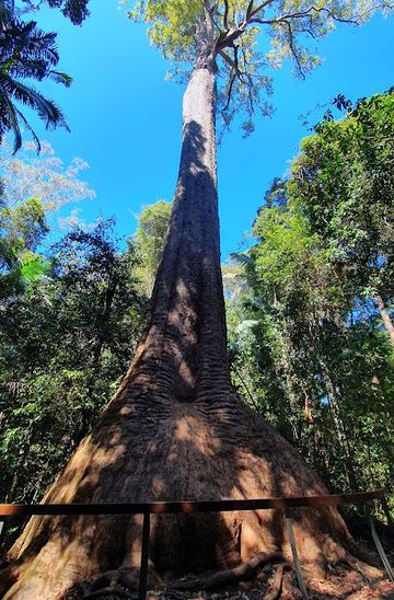 Explore the stunning Old Bottlebutt, a towering Red Bloodwood tree in Burrawan State Forest, and experience Australia's natural beauty up close.