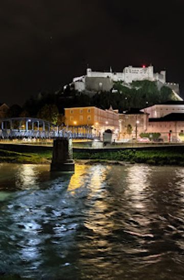 If you are already in the city center, you can easily walk to Goldene Kugel. From the Mirabell Palace, head south towards the Salzach River, cross the bridge, and continue straight on Linzer Gasse until you reach Sankt-Peter-Bezirk. The entire walk should take about 15-20 minutes.