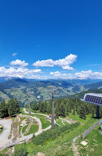 To reach Aussichtsturm Gernkogel using public transport, take a bus from Hochkönig to St. Johann im Pongau. The bus will take you to the main bus station in St. Johann. From there, you can either take a local taxi to the Gernkogel lift station or check for seasonal shuttle services that may operate during summer months. Once at the lift station, purchase a ticket for the Gernkogel cable car, which takes you directly to the viewpoint.