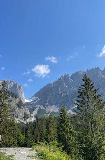 If you're driving, head towards Ellmau from the nearest major town, which is Kufstein. Take the A12 motorway and exit at Kufstein Nord. Follow signs for B173 towards Ellmau. Once in Ellmau, continue on the main road until you reach the parking area near the valley station of the Hartkaiserbahn cable car. The parking fee is approximately €5 for the day. From the parking area, follow the marked hiking trails towards Ellmauer Tor.