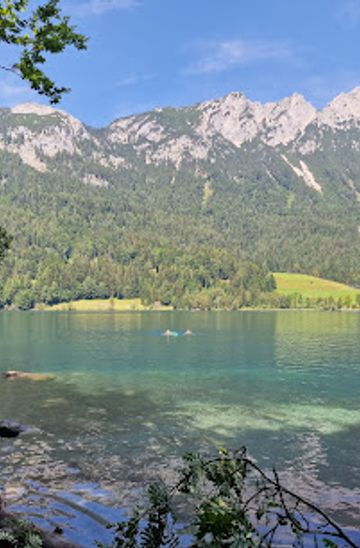 If you're traveling by car, head towards Hinterstein. From the center of Kufstein, take the B173 towards Ebbs, then follow signs for B178 towards Going and continue to the town of Hinterstein. Once in Hinterstein, you can park your car at the designated parking area near Runde Hintersteiner See. The parking lot is usually well-marked, and it may cost around €5 for a day’s parking. After parking, follow the marked walking trails to Aussichtsbankerl, which is about a 20-minute walk from the parking area.