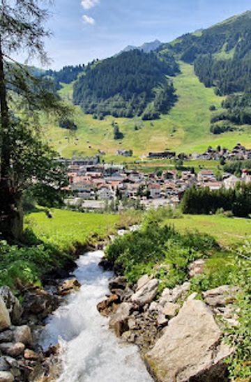 From Lech-Zürs am Arlberg, take the bus from the Lech Post Office bus stop towards St. Anton am Arlberg. The bus ride takes approximately 30 minutes. Get off at the St. Anton am Arlberg bus station. From there, follow the signs towards the Stockibach Wasserfall trailhead, which is about a 30-minute walk uphill. Ensure to check the bus schedule in advance as services may vary, especially on weekends.