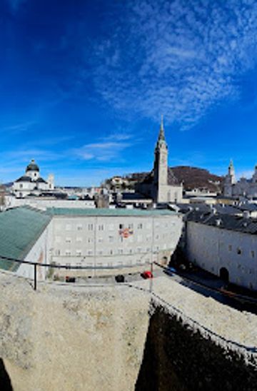 From Salzburg's Old Town, follow signs towards the Mönchsberg. You can ascend via several well-marked trails. The walk takes approximately 20-30 minutes depending on your starting point. Alternatively, from the Old Town, walk towards Gstättengasse to reach the Mönchsberg Lift valley station. A single ride costs €4.30.
