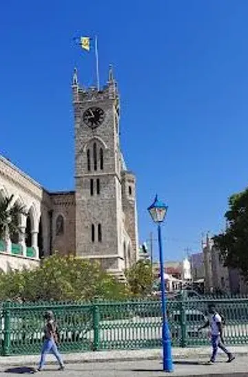 From the Chamberlain Bridge in Bridgetown, walk north along Broad Street towards National Heroes Square. The Parliament Buildings are located on the north side of the square, directly across from the Cenotaph War Memorial. The walk is approximately 5 minutes and offers views of other historic buildings in the city center.