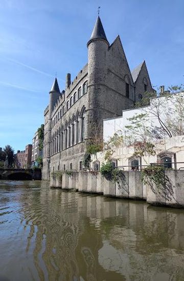 From the Korenmarkt in Ghent's city center, head northeast towards Sint-Baafsplein. Take the exit towards Veldstraat and continue straight until you reach the intersection with Geraard de Duivelstraat. Turn right onto Geraard de Duivelstraat, and you will find Geeraard de Duivelsteen located at number 1 on your left. The walk is approximately 15-20 minutes.