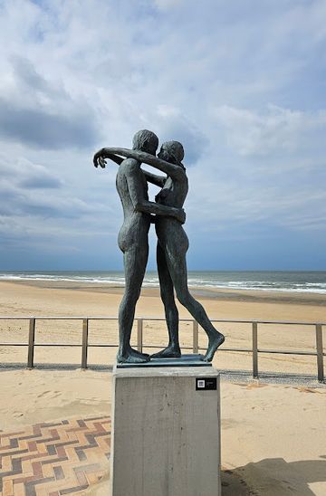 The statues are located on Zeedijk 19 in Wenduine, part of De Haan. From the Wenduine Centrum tram stop, walk along the Zeedijk (seafront promenade). The statues will be visible along the promenade. The walk is approximately 5-10 minutes. No costs are associated with walking.