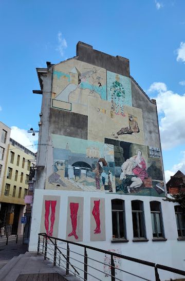 The Jan Van Imschoot mural is located on Brabantdam 40, easily accessible by foot from Ghent's city center. From Korenmarkt, walk south along the Veldstraat, then turn left onto Brabantdam. The mural will be on your right. The walk is approximately 10 minutes.
