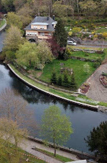 Experience the tranquil beauty of Vu Esch-sur-Sûre, a serene garden in Luxembourg perfect for peaceful strolls and nature appreciation.