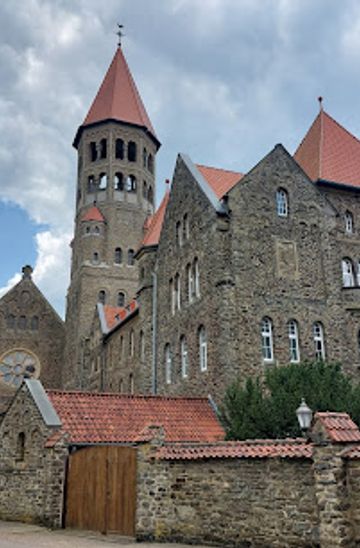 Benedictine sanctuary above Clervaux, offering Romanesque revival beauty, serene cloisters, and panoramic Ardennes vistas—a spiritual and architectural gem in Luxembourg.