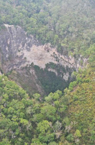 Explore the breathtaking Pancho Rojas Sinkholes, a natural wonder in Spanish Lookout, showcasing magnificent escarpments and lush biodiversity.