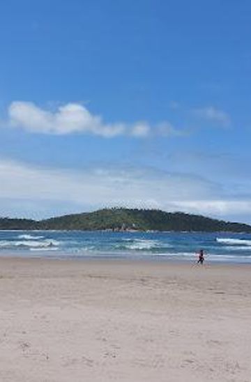 Campeche, located in Florianópolis, is known for its stunning 3.5km beach with white sand dunes and strong waves, perfect for surfing and kitesurfing. The nearby Campeche Island, accessible by boat, offers trails, diving spots and rock inscriptions.