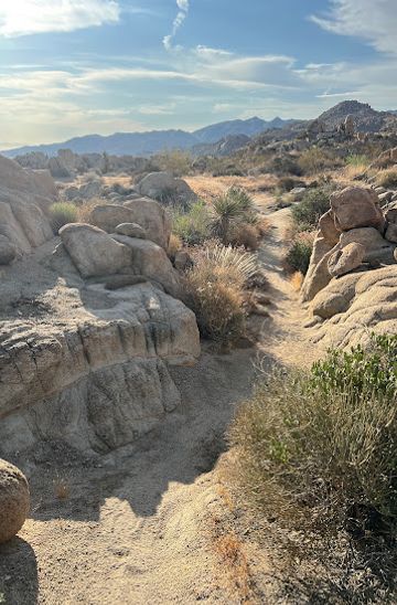 Start at the Joshua Tree Visitor Center located at 6554 Park Blvd, Joshua Tree, CA 92252. Walk south on Park Blvd for about 0.5 miles until you reach the intersection with Highway 62. Cross at the crosswalk and continue east along Highway 62 for 1 mile. Look for signs indicating the entrance to Joshua Tree Conservation Park on your left. Follow the path and signage leading into the park.