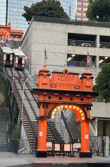 Angels Flight Railway, known as the world's shortest railway, is a historic funicular in downtown Los Angeles. Operating since 1901, it offers a brief but charming ride between Hill Street and Grand Avenue on Bunker Hill, saving riders a steep climb.