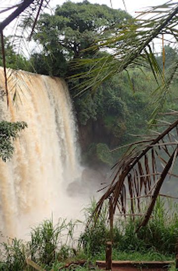 Chutes de la Métché, near Mbouda, Cameroon, is a stunning waterfall cascading over rock formations, surrounded by lush landscapes. It's a place of natural beauty and historical significance, offering a tranquil escape and a glimpse into local culture.