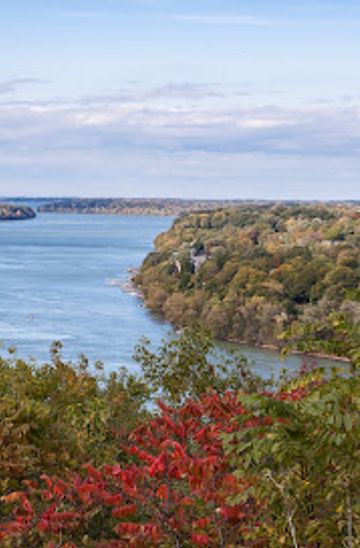 If you're starting from the Niagara Falls State Park, walk south towards the Rainbow Bridge and cross into Canada. After clearing customs, continue walking down the Niagara Parkway. The walk is approximately 4.5 km (about 1 hour) along the scenic riverfront. Follow the parkway south until you reach Queenston Heights Redan located at 14340 Niagara River Parkway.