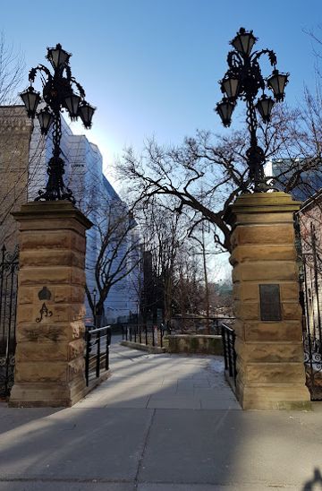 The Alexandra Gates, also known as the Queen Alexandra Gateway, mark the northern entrance to Philosopher's Walk at the University of Toronto. Built in 1901, they commemorate the visit of the Duke and Duchess of Cornwall and York (later King George V and Queen Mary) and offer a glimpse into Toronto's Edwardian past.