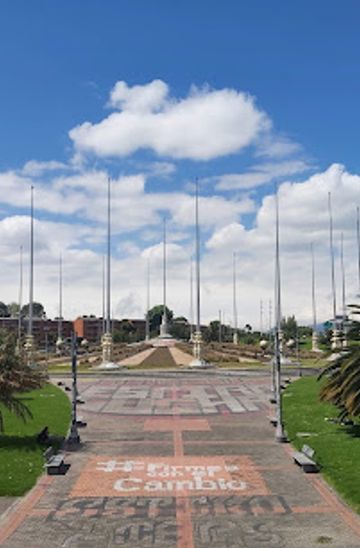 Explore the Monument to the Flags in Bogotá, a stunning tribute to Colombia's national identity surrounded by lush gardens and vibrant city life.