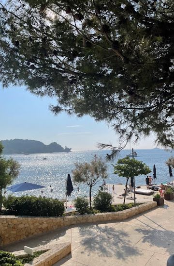 Starting from the center of Rovinj, head towards the waterfront promenade known as the 'Lungomare.' Walk along the promenade in the direction of the Hotel Lone. After about 15-20 minutes of leisurely walking, you will arrive at a fork in the path. Keep to the right side, and continue walking along the coast. As you approach Hotel Lone, you will see signs indicating the direction to Beach Mulini. Follow the path leading to the beach, which is located just behind the hotel. The beach entrance will be marked, and you can enjoy the beautiful views of the Adriatic Sea.