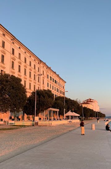 If you're starting from the Zadar city center, head towards the waterfront. Begin at the People's Square (Narodni trg) and walk towards the Riva (the promenade). From there, continue walking along the waterfront towards the south. You'll pass by the famous Sea Organ and Greeting to the Sun installations. Keep walking along the coast until you reach the Obala kralja Petra Krešimira IV. Meerpromenade is located along this street, and you'll find it lined with bars, restaurants, and beautiful views of the sea.