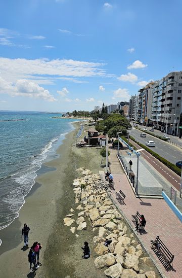 Limassol's vibrant Akti Olympion Beach: Enjoy swimming, sunbathing, dining, and city exploration along this accessible coastal strip.