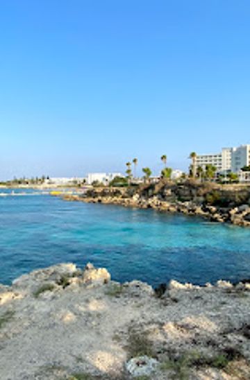 Tell me more about ProtarasDiscover the allure of Fig Tree Bay in Protaras, Cyprus: golden sands, crystal waters, thrilling water sports, and a vibrant atmosphere await at this Blue Flag paradise.